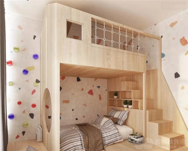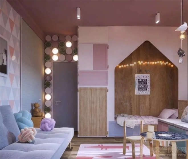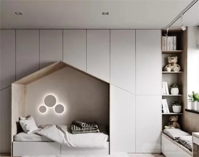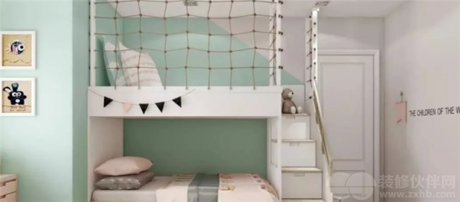 家里有孩子的家庭,可以将小房间打造成儿童房。不过,儿童房作为孩子睡觉、学习和游戏活动的小天地,建议采用床与衣柜合二为一的设计,留出足够的活动空间,让小朋友可以尽情地玩耍和探索。