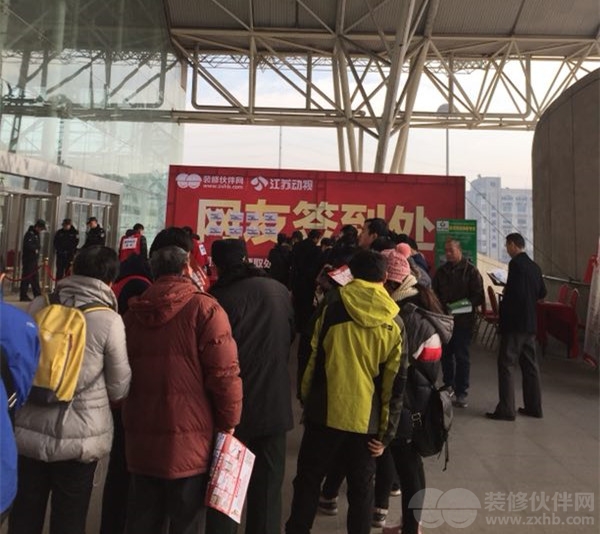 然而,南京的小伙伴为了参加我们的展会。大清早8点左右,就排起了长长的队伍,这不仅显示了南京小伙伴们装修的积极性,更体现出我们活动的诱人度和业主们对我们的信任。