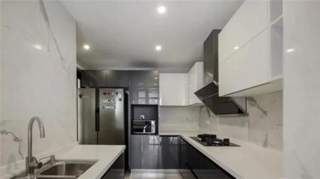 关于厨房内部的动线大家应该很熟悉了,最合理的动线为:洗菜(水槽区)——切菜(备餐区)——炒菜(烹饪区)——盛菜(装盘区)。动线流畅,日常做饭做菜才能一气呵成,否则就像在厨房打仗。