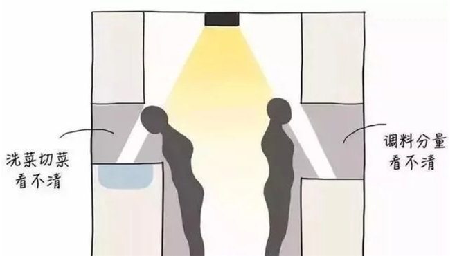 很多人为了方便省事选择一个空间就安装一个灯,尤其是厨房、卫生间、卧室、书房,空间小,一灯到底解决。后果就是不论做什么都看不清!