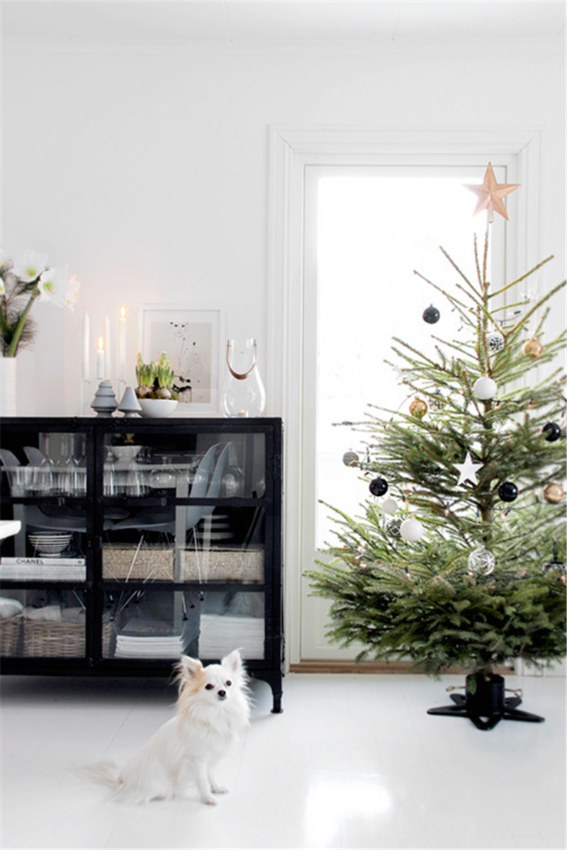 用色一定要忍住,快把那些五彩的拉花彩带都丢掉吧。用好暖色串灯,白色、金色和灰色的装饰品,圆球、星星、木马都是很有格调的装饰。