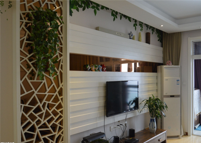 当初装修的时候没经验,只顾着好看,而忽略了实际用途,所以没有预留壁挂电视的插座。如果液晶电视要挂起来,就只能走明线,看起来不太美观。电视机最后只能放在柜子上,一点都不美观。