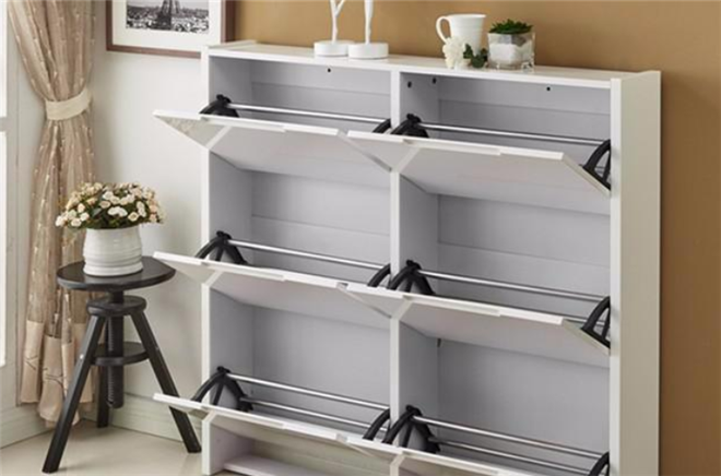 家具的尺寸,一定要提前做好规划,有时候设计师是不接地气的,设计一定要自己亲自参与!鞋架设计的时候,压根不考虑鞋子的长短,最后只能将鞋子只能横放啊!尤其是柜门上翻式的鞋柜,一定要考虑好家人鞋子的尺码,千万别等到鞋柜到家时,才发现鞋子塞不进去。