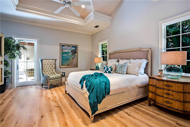 如果选色彩浓重的暖色地板就会使空间显得狭窄,增加压抑感。此外,在地板的花色的选择上,应倾向于小纹理或直纹效果,避免大而繁的花纹。