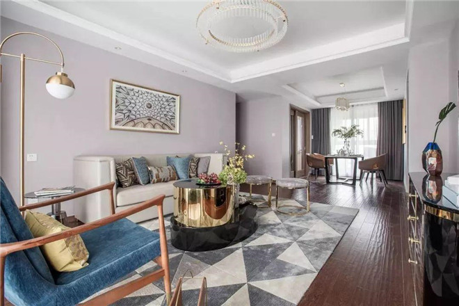 3、地毯的选择也是很有讲究的,地毯的造型,款式,花样很多。好的地毯不仅美观,还具有吸音的功能。所以选择一张与自家风格装修相搭配的地毯,瞬间提高房间的颜值。