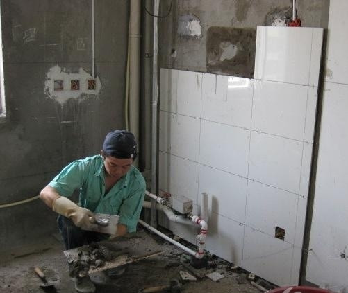 5、干铺湿铺:墙砖应采用2:1水泥砂浆湿贴法工艺,不允许使用纯水泥贴墙砖。(往厨房烟道、卫生间风道、厨卫包了管道的墙面上贴砖时一定要往水泥砂浆里面添加108胶,以增加粘力)。地砖应使用1:3的干性水泥砂浆,采用干铺法工艺。