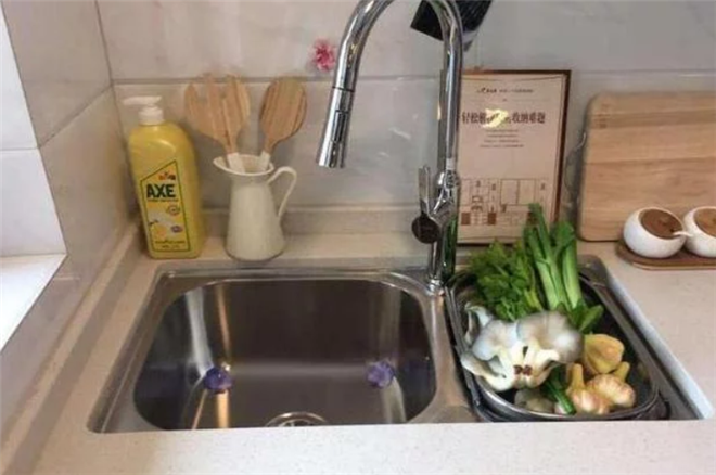 厨房水槽一定要装台下盆,清洁起来方便。至于是装单槽还是双槽,这个各有优缺点。
