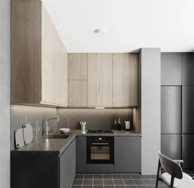 当然,只要用心设计,吊顶和吊灯还是有更好发挥的,比如内嵌式吊顶,也就是我们俗称的“吊平顶”,简洁又大方,还好清理,层高不足的空间尤其适用。灯具也可以选择简洁,易清洁款式。