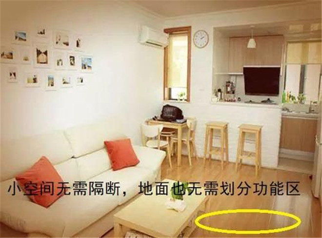 不要使用隔断进行区域划分,也不要使用不同的地面装饰划分区域,比如不同的地砖花色、不同的地板花色等,这样看起来比较复杂局促,既然是小户型,地面都使用统一的材质和颜色比较好,才不会显得头重脚轻。 小户型比较适合使用软隔断,如珠帘、纱帘、玻璃等比较通透柔和的方式,不仅可以增加使用空间,也不会让视觉受碍。
