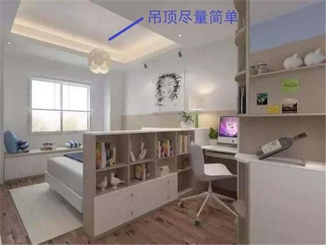 小户型的吊顶应该比较薄,吊顶的装饰也选择简单的比较好,或者不做吊顶。也可以考虑做异形吊顶或者铝制、木制的格栅吊顶。吊顶的材料也可以选择新型而富有创意的材料,既新颖又无局促感。