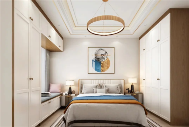 飘窗设计卡座,尽享慵懒生活将卡座设计与卧室飘窗结合起来,打造休闲角落,营造出慵懒的氛围。如果家里卧室的飘窗面积足够,将飘窗改为卡座,闲来无事时可以静坐休息,看书、追剧、听音乐,还能在飘窗边沐浴阳光,享受慢时光。