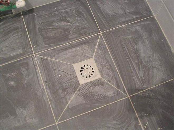 2、用凿子将地漏水泥层整理一下。不能让碎屑掉入排水管。干净后,将地漏附近刮上水泥腻子。