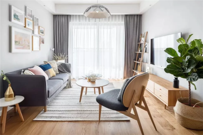 除了占地面积之外,其实沙发的款式在一定程度上,也会影响着整个客厅的视觉效果的。可以适当去选一些较为低矮的沙发,此外“细腿”型的沙发也是个不错的选择哦!