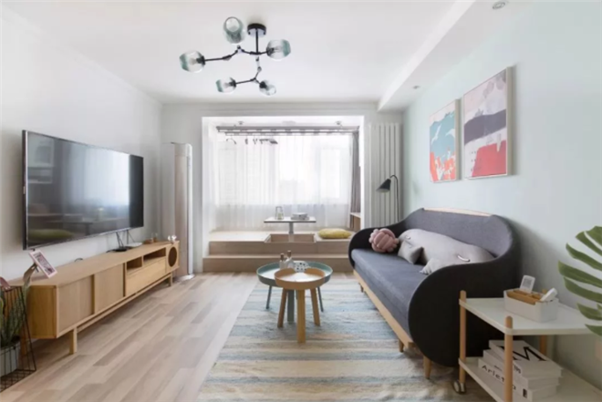 小户型客厅内可活动的空间有限,活动动线也很有限、单一,茶几作为客厅中心的一件家具。