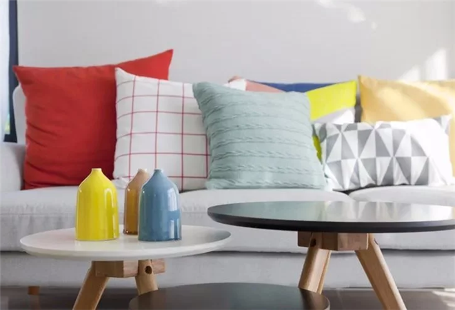 如果不知道选什么,可以直接搭配黑色、白色、或木色茶几,这三个颜色在客厅当中,是不会出错的。