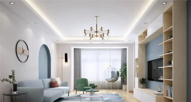每种不同的颜色都拥有它独特的印象,冷色调清新、冷静;暖色调温暖、热烈。偏向于小清新风格装修的,建议采用天蓝色、原木色等大面积不刺激的浅色作为主色调,适用于背景墙、窗帘、天花板等场景。