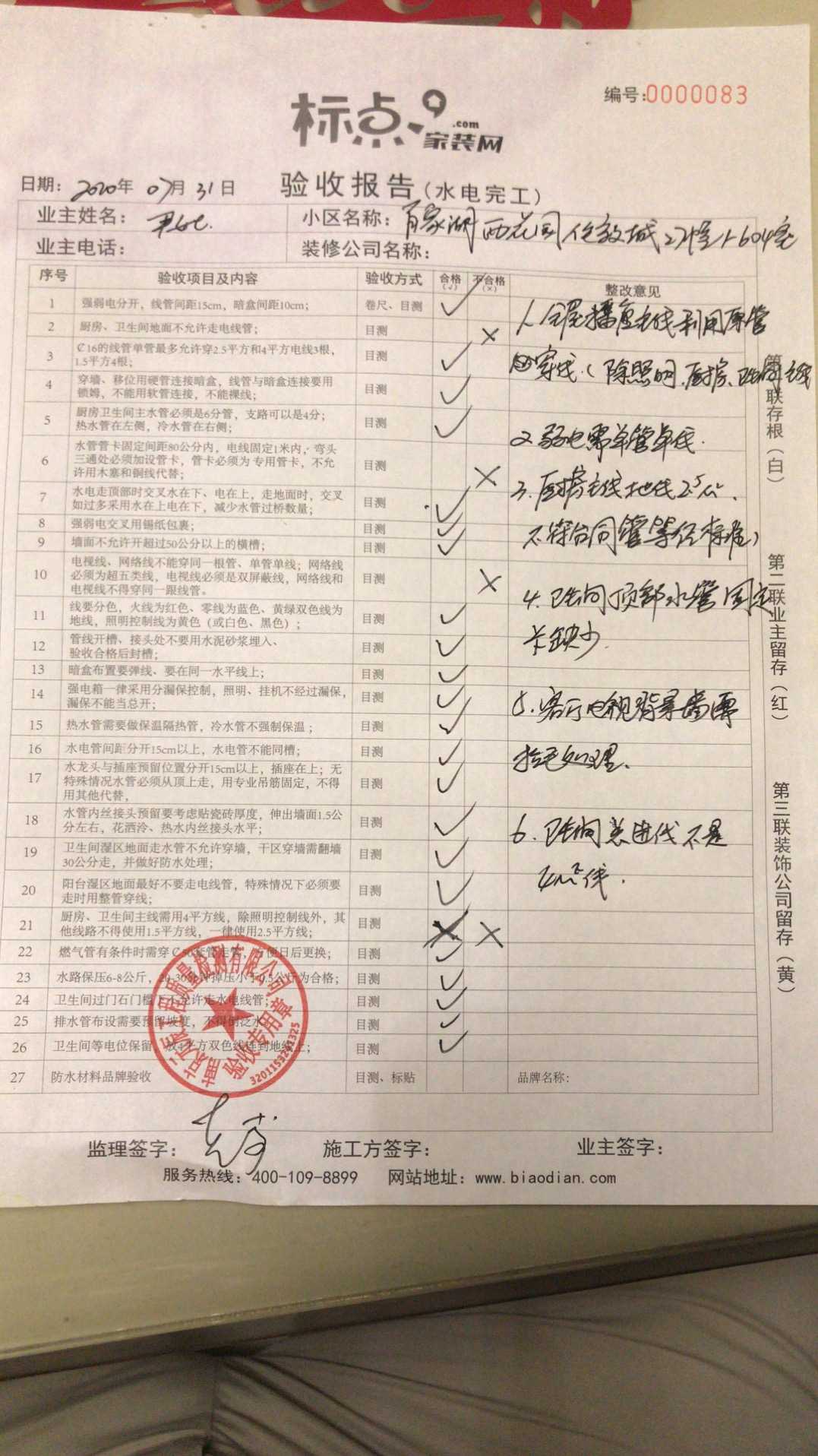 7.20-10.19全包合同,二手毛坯,合同约定水电全改,实际施工大量使用原线路,强弱电都没有重新开槽布线管铺线,弱电管一根线管硬塞两根线,厨房电路直接走地,造成大量安全隐患。施工没有监理,我自己找的第三方监理提出问题拒不改正。 1.电线拉扯断裂,破皮,漏电;2后期维修管线只能砸墙,砸地;3无法提供电路施工图纸,家里电路走向个人不了解,墙面无法有任何改动,连钉子都不可以打。