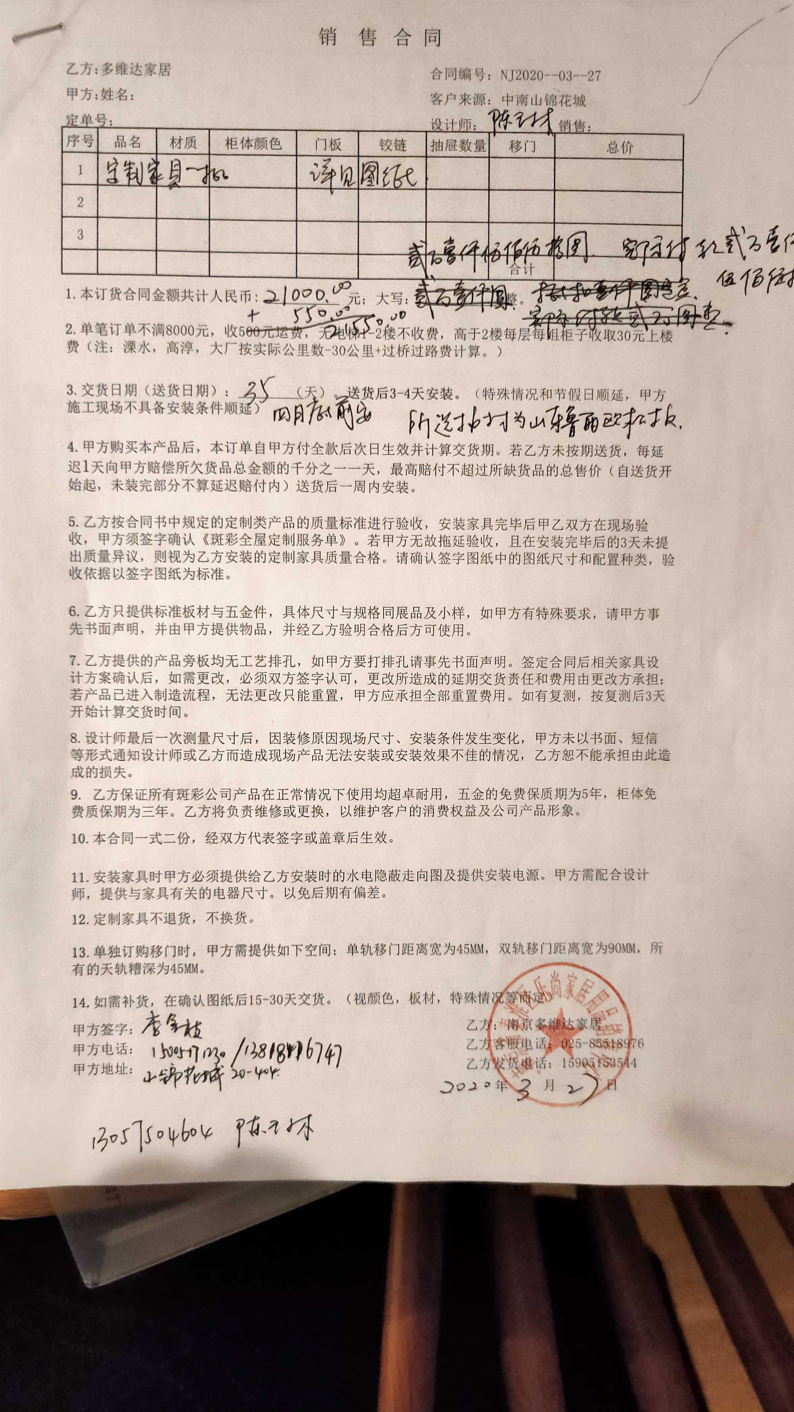 多维达全屋定制负责人答应投诉站,和消费者协商处理,投诉站跟进 | 2021-04-02 |
