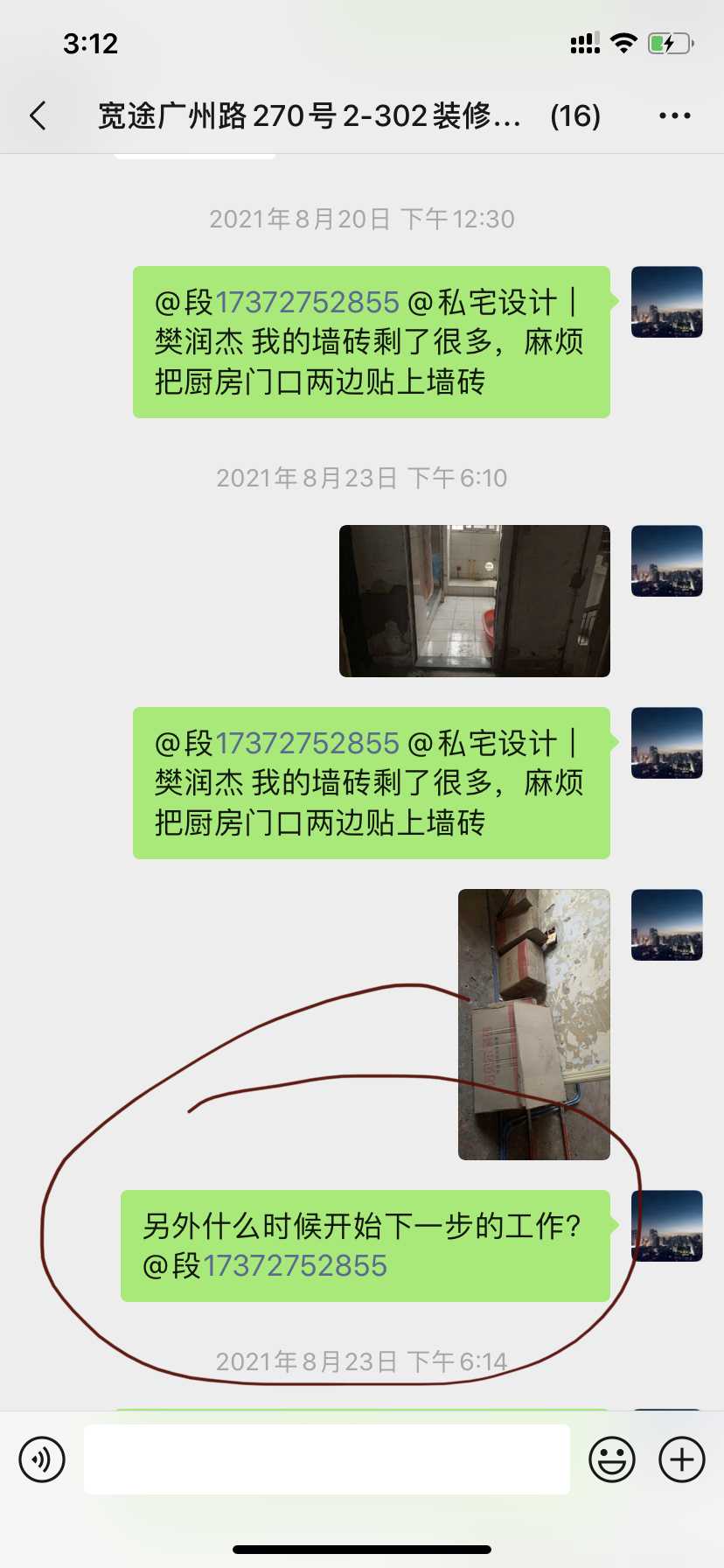1、沟通障碍,既不与业主沟通,设计与施工也不沟通,我跟设计师沟通是将厨房墙面打掉一般放冰箱和集成灶,结果是哐哐一面墙全砸,导致连放安装热水器的位置都没有,在多次沟通终于补回了一部分,在补墙过程中又忽视业主要求放集成灶的高度,导致,目前厨房既不能安装集成灶,也不好安装热水器。