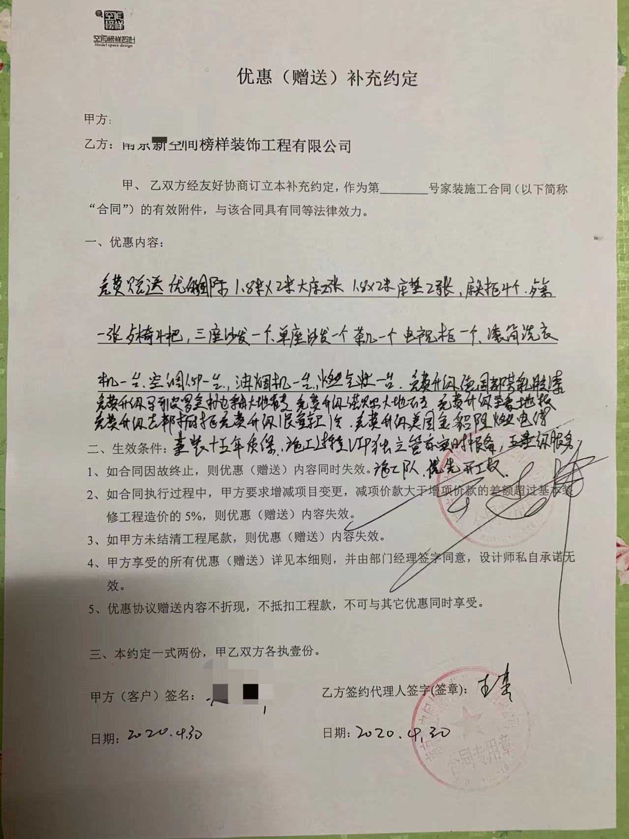 对 南京新空间榜样装饰 的投诉内容: