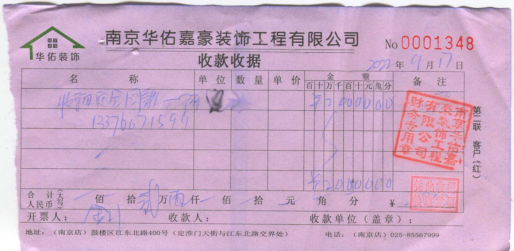 对 南京华佑嘉豪装饰工程 的投诉依据: