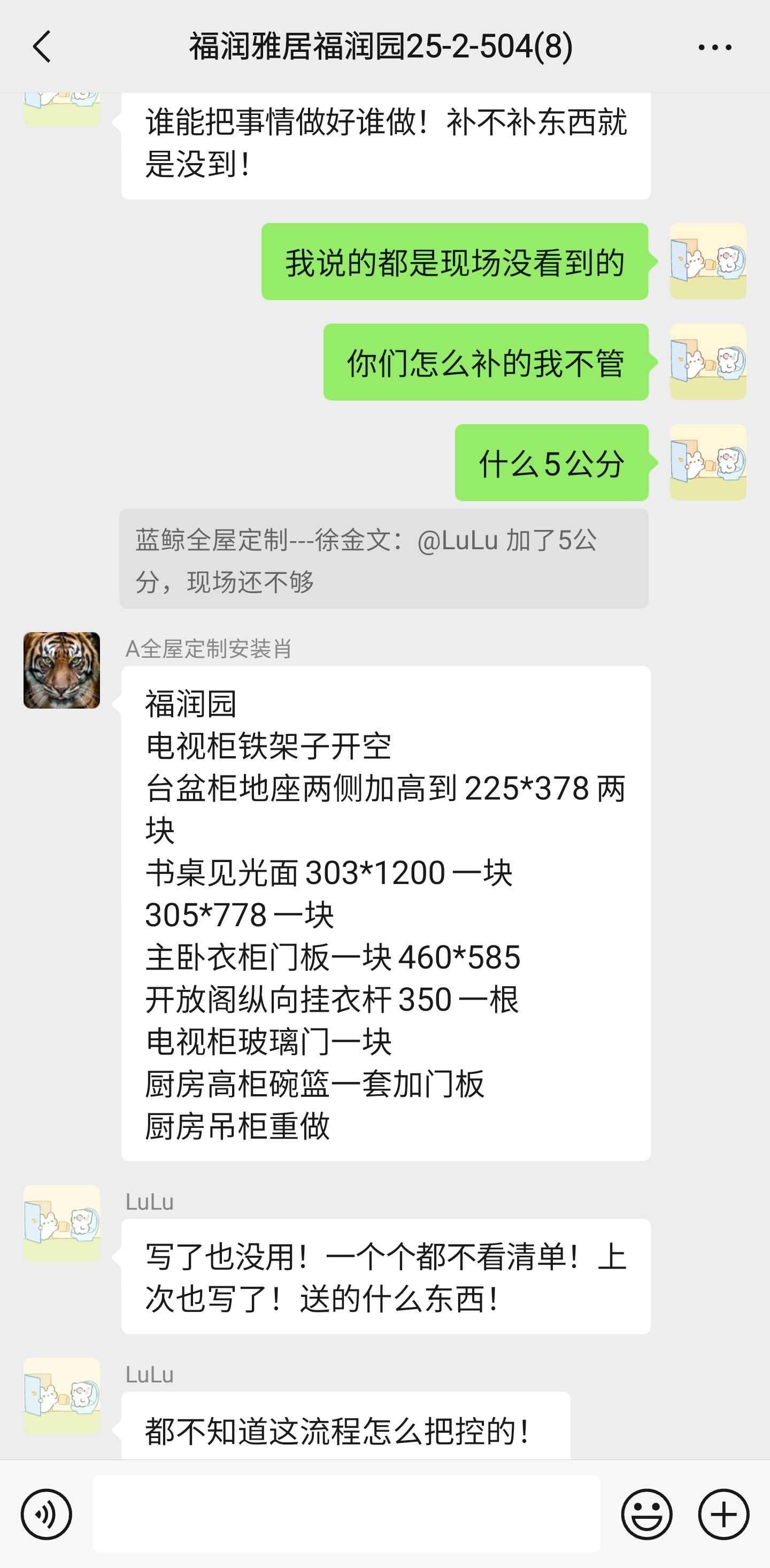 对 蓝鲸之梦全屋定制 的投诉内容: