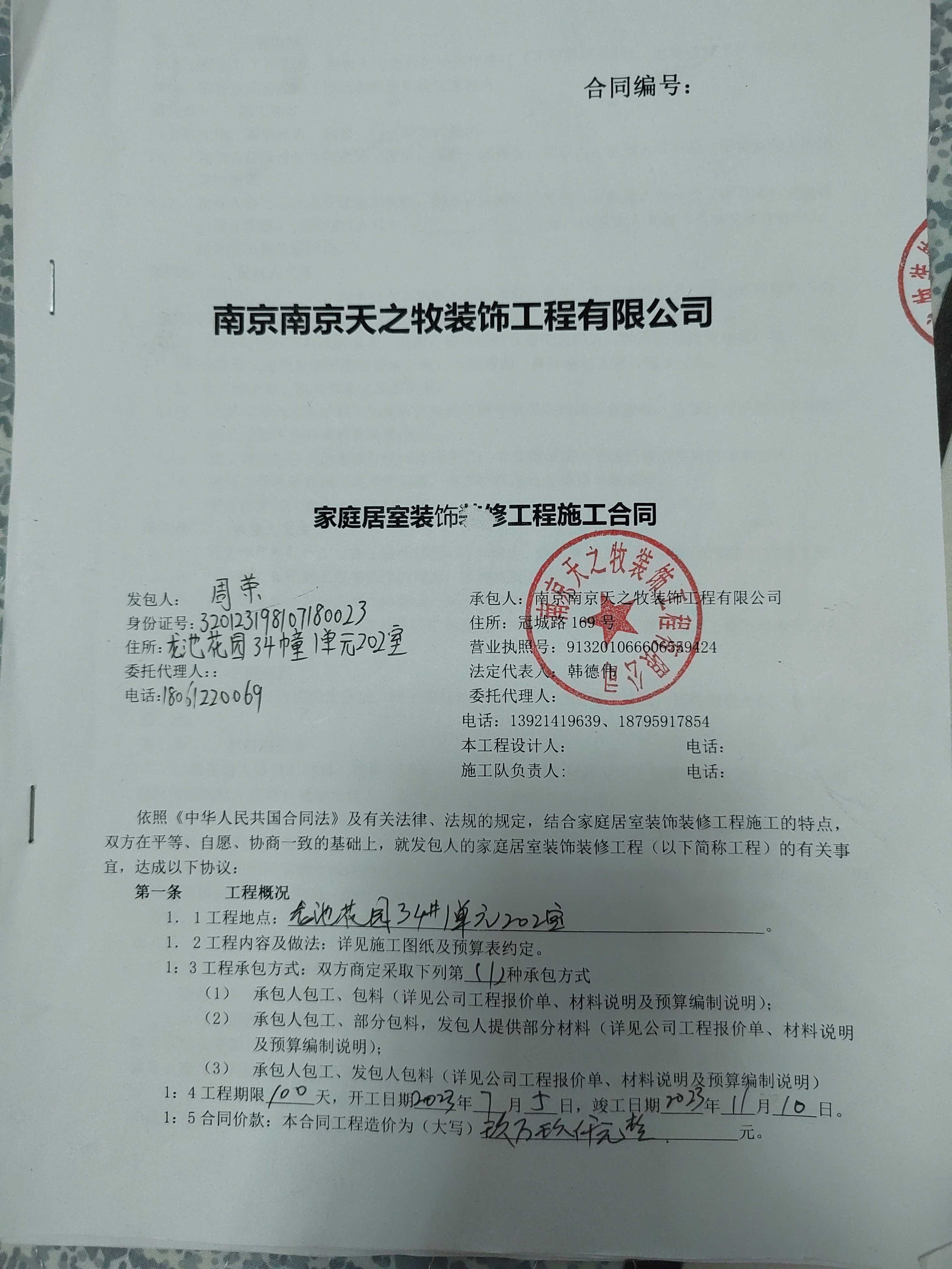 对 天之牧装饰公司 的投诉依据: