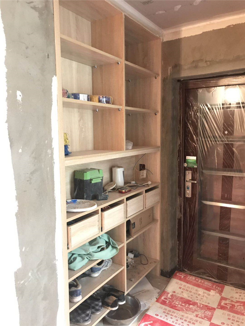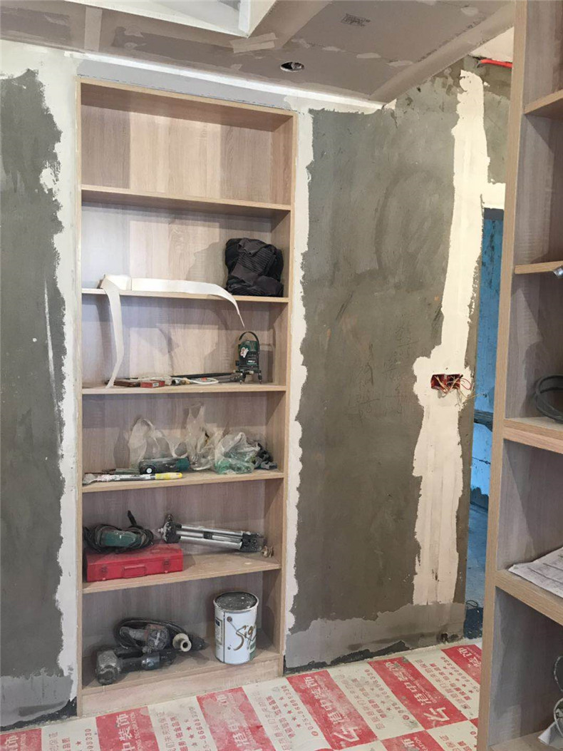 装修器材都整齐的放在了架子上,这一点简直治好了强迫症,就算是灰尘很大的施工工地,也是看起来整整齐齐。
