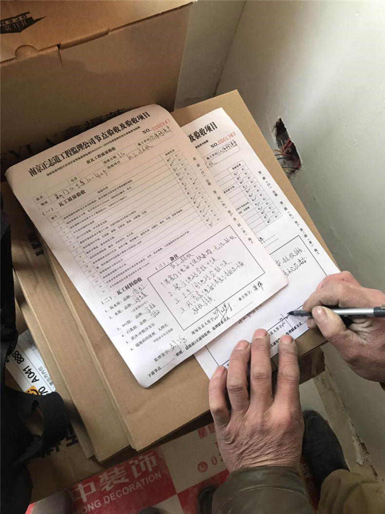 这次的监理很年轻,但是,一点都不含糊,眼睛锐利的很,分分钟抓出一堆问题。小锤子敲敲敲,找出了有空鼓的瓷砖,并且细心地做上标记