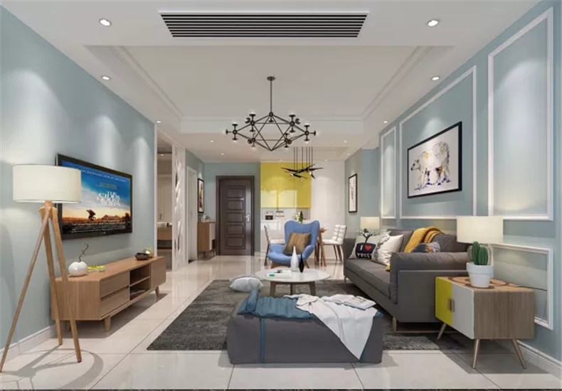 如果客厅面积较小、高度较低,比较适宜选择如吸顶灯、样式简单点的吊灯等,可有效避免空间拥挤现象。